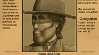 I've decided to make character sheets for the game. They will be styled after real wanted posters, and have places for all your character info. I plan on producing a few mugshots for different charact...
